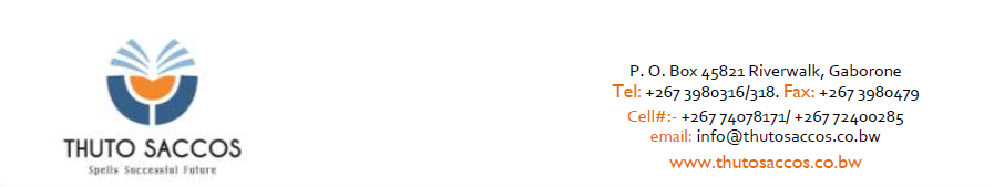 Thuto SACCOS members are encouraged to register for the 2026 Annual General Meeting. Registration is scheduled to commence on the 1st of March 2026 to the 31st of March 2026. Please note that only registered members will be granted access to the AGM. Members without internet access should contact our office at 390 2023 for assistance. The specific date and venue of the Annual General Meeting will be communicated in due cause. The event will be held in Gaborone, Botswana.